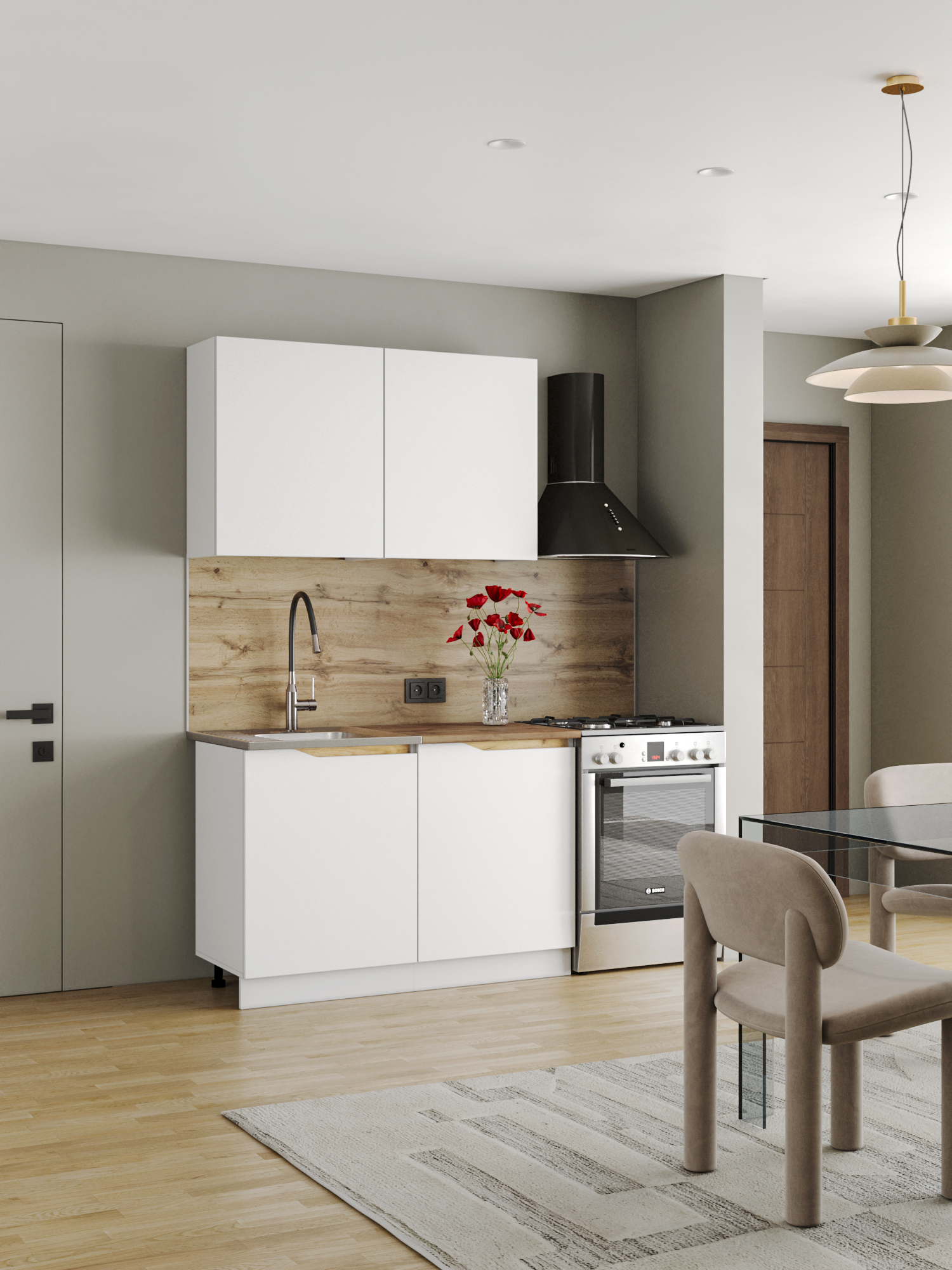 Кухонный гарнитур Мирра — практичный комплект длиной 1,2 метра в современном стиле