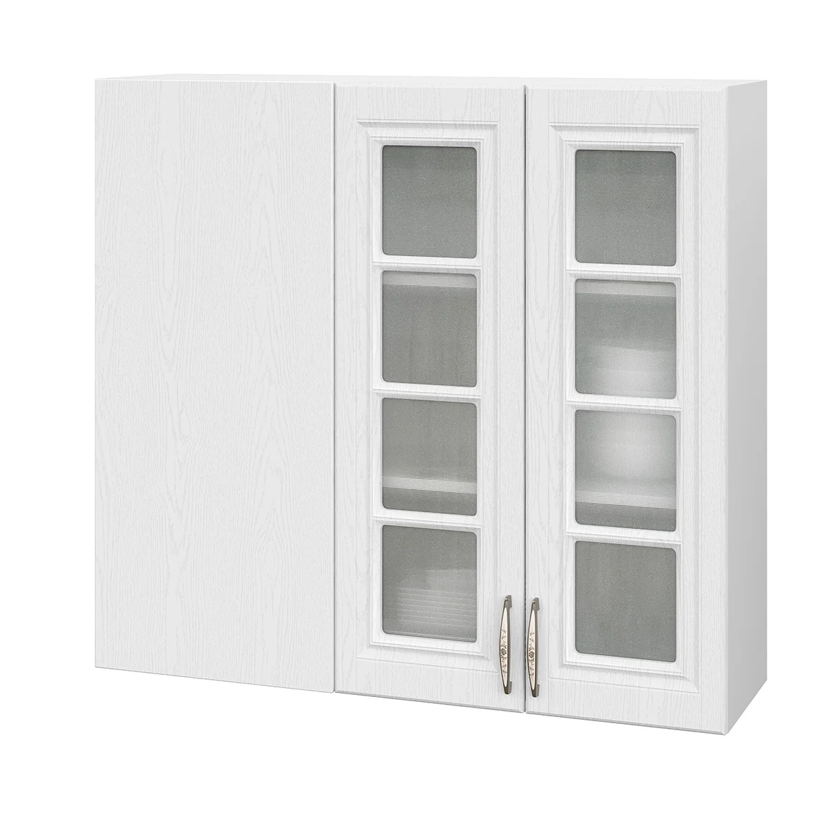 Шкаф верхний, угловой, шириной 1000 мм для формирования прямого угла с распашным рамочным фасадом со стеклом
